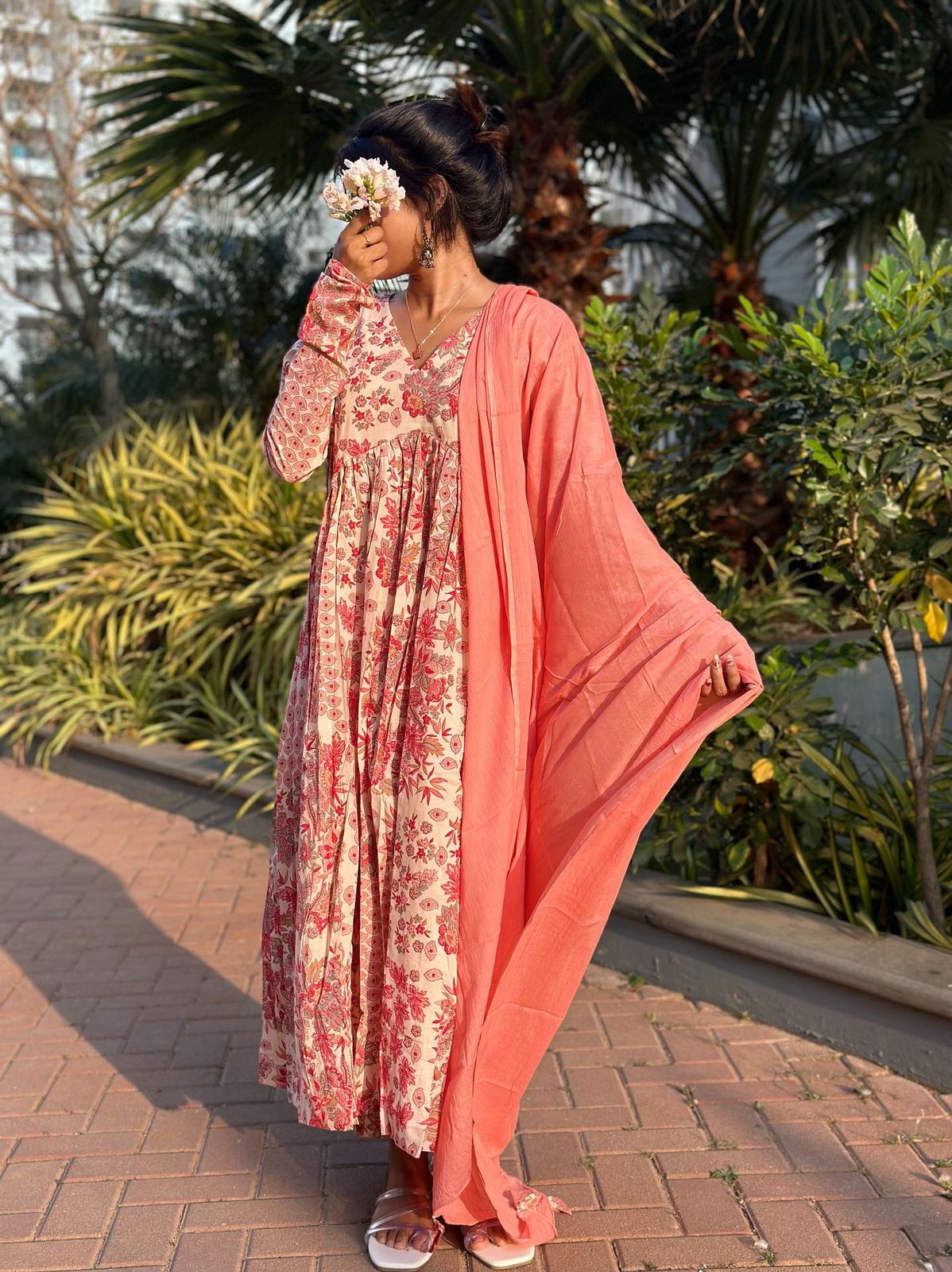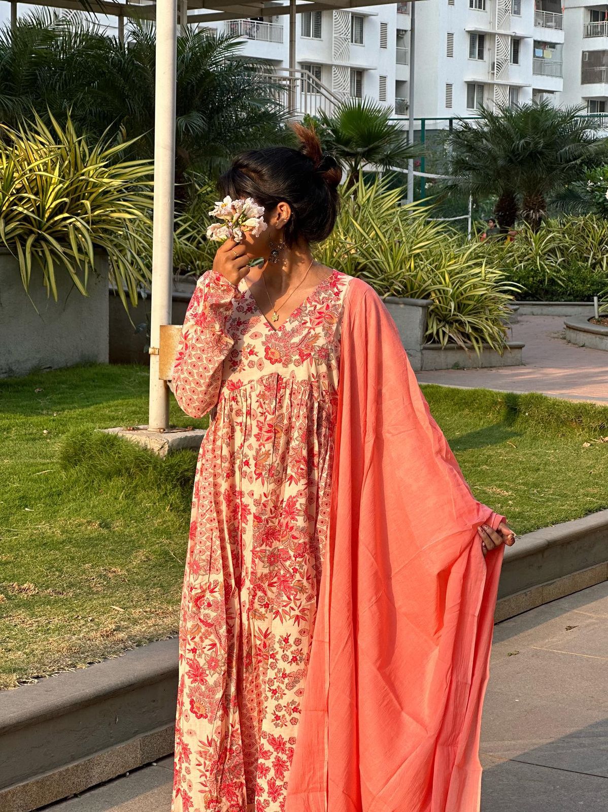 Whether you're dressing up for a festive occasion or adding charm to your everyday wardrobe, this Anarkali set blends tradition with modern flair. Pair it with jhumkas and kolhapuris for a complete ethnic look.