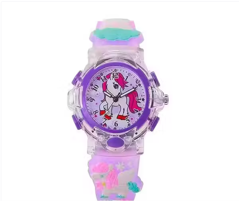 Featuring a round dial adorned with a cartoon character, this unisex kids' watch includes a light function for easy reading. It does not support dual time. No return or Refund. It is sold as a single unit.
