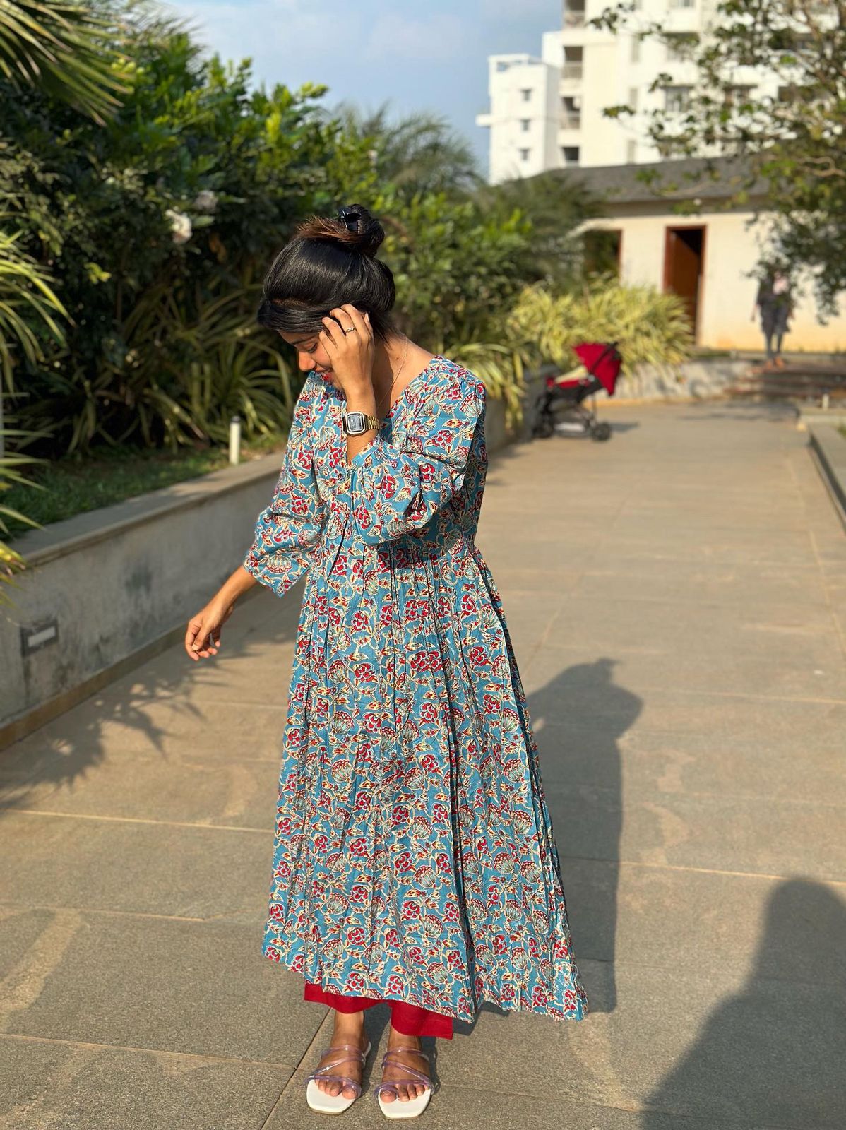 Whether you're dressing up for a festive occasion or adding charm to your everyday wardrobe, this Anarkali set blends tradition with modern flair. Pair it with jhumkas and kolhapuris for a complete ethnic look.